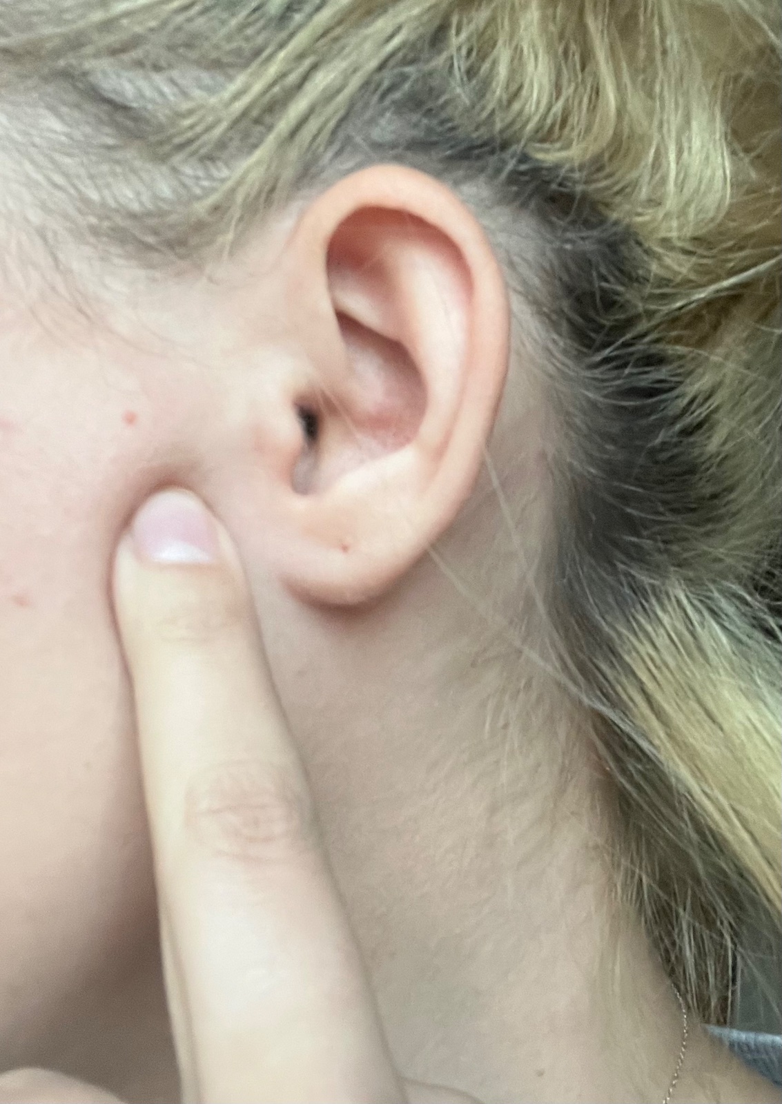 V tomhle místě by snad žádná podstatná mírní uzlina být neměla... ale za to se mi takle u ucha ty "uvnitřní beďary" dělali poměrně rády a na dotek ostře bolely, jako každá zanícená ranka... Nateklá místní uzlina bývá spíš tupý tlak, který se samozřejmě na dotek zhorší, ale je to trochu jiný typ bolesti než zánětovej... navíc jde částečně rozmasírovat.