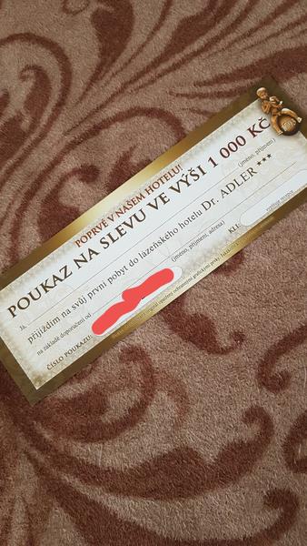 Zdravím, daruji poukaz na slevu 1000 Kč ve Františkových lázních do hotelu Adler. Poukaz je potřeba uplatnit při rezervaci pokoje