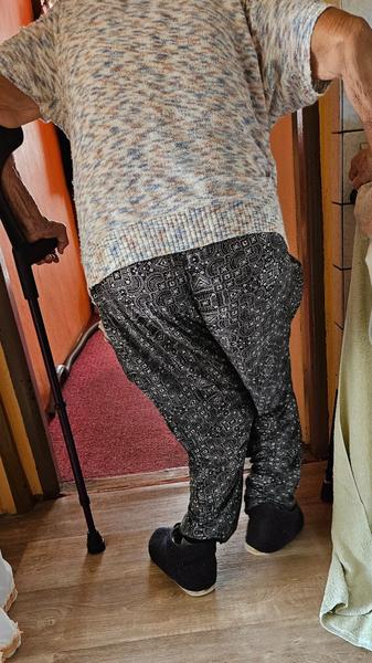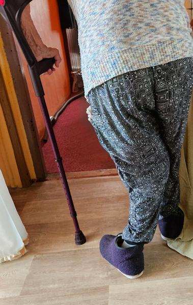 Ach bože, chudinka babička. Hrozně se mi na to dívá, je mi jí líto. Každopádně si neumím představit, jak může takto dlouhodobě chodit. To výše zmíněné chodítko nebo vozík je podle mě pro ni více než potřebný. ❤