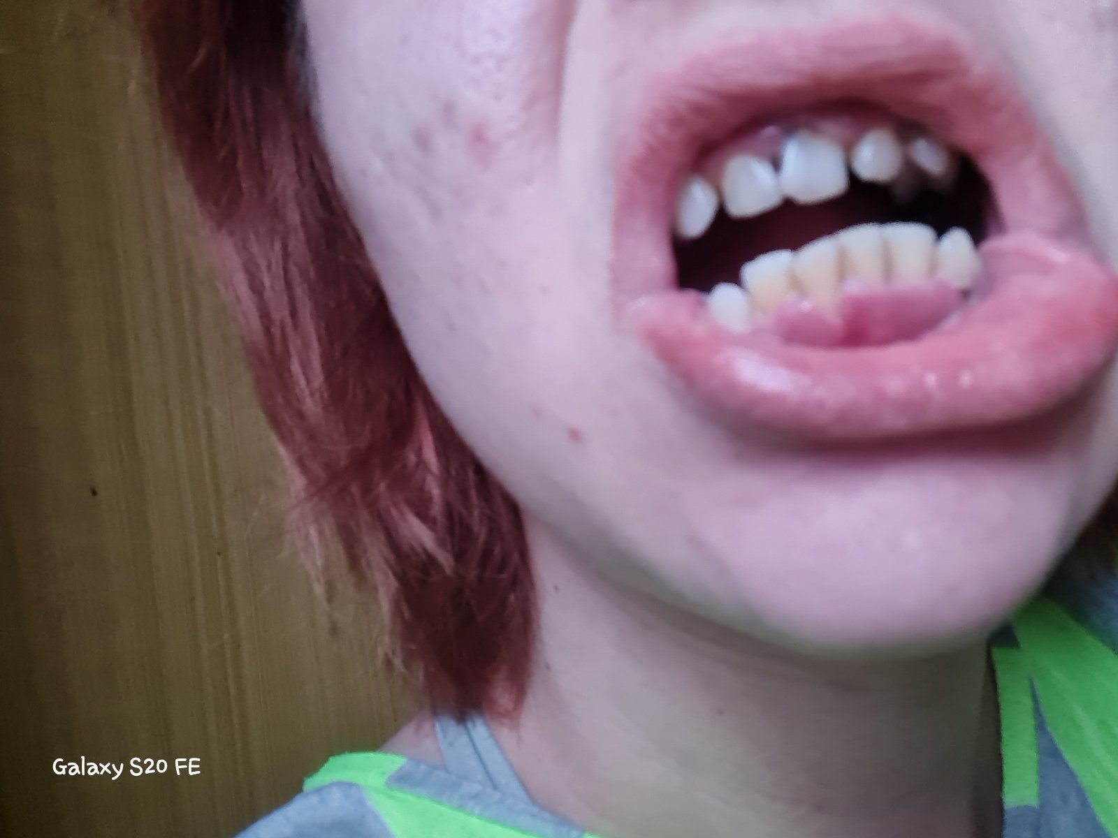 Dělal mi teď dost kanálku a ještě bude. Spodní 4 zuby mezi špicaky dole jsou dost vidět a když prstem sáhnu na dasen odlepuje se od zubů.