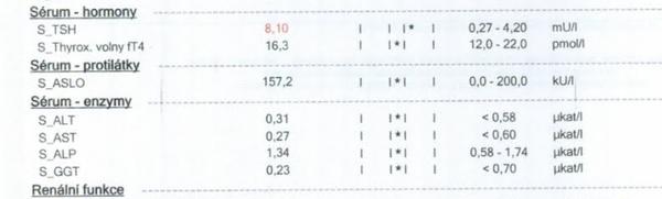 Tady jsou mě hodnoty (hned ty první), s kterými se začala léčit. Lékař ti k těm výsledkům nic víc neřekl? Pokud máš pochybnosti, zavolej si na endokrinologii a objednej se na vyšetření. 😉 Mě se ty hodnoty zdají v pořádku, ale třeba tchýně měla výsledky z krve na štítnou žlázu v pořádku a nakonec jí byla porucha odhalena na sonografickém vyšetření na endokrinologii. 😉 Takže jak říkám, pokud máš pochybnosti, objednej se na endokrinologii. 😊