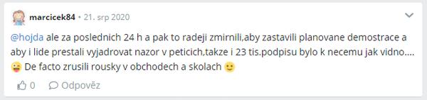 @marcicek84 No ty rychle zapomínáš, jak si tu chválila demonstrace a petice, že stačilo tak málo lidí, aby zrušili roušky v obchodech a školách. A teď od toho dáváš ruce pryč.