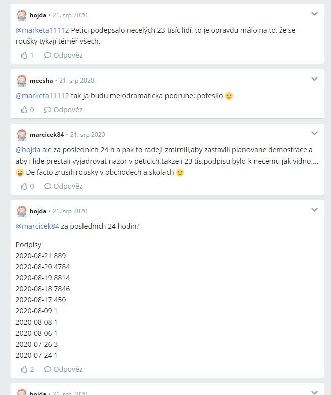 @hojda o těch dalších diskuzích mimo koronu, škoda, žes tady nevykopírovala příspěvky, kde mám i přes 20 lajků...takže lži si do kapsy dál a prosím tě, už mě neobtěžuj svými bolískami a špatným pochopením nějakého smajíka, tohle je fakt úlet, napsat někomu, že něco odstartoval mrkajícím smajlíkem, tos musela mít jedině své dny, protože jinak fakt nechápu...
