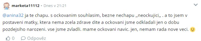 @marketka_m psala jsem a odpovidala na to, ze bezne nechavam deti ockovat. ale nenecham je ockovat proti covidu. jak rikam, nemam rada nove veci - tim padem, ani nove vakciny.