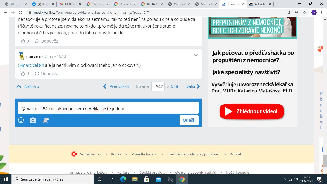 @marcicek84 co to do toho zase pletes. Ty jsi rikala, ze se s tim neda nic delat - ja na to, ze da, a ze je to skoda (mam to podlozeny, muzu vysvelit, ale vetsina to tu vi). Co je na tom problematickyho. ...nebo to chces zase preklopit do osobni roviny a zanadavat si za kazdou cenu? Tak prosim, posluz si.