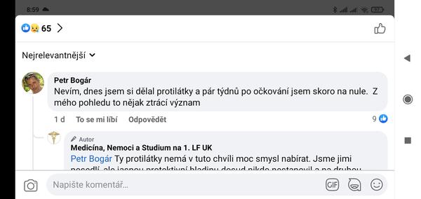 @marketa11112 plus komentář Čecha, který je v diskuzích tam i u hejtmana Vondráka celou dobu silně pro očkování, kterého se nemohl dočkat: