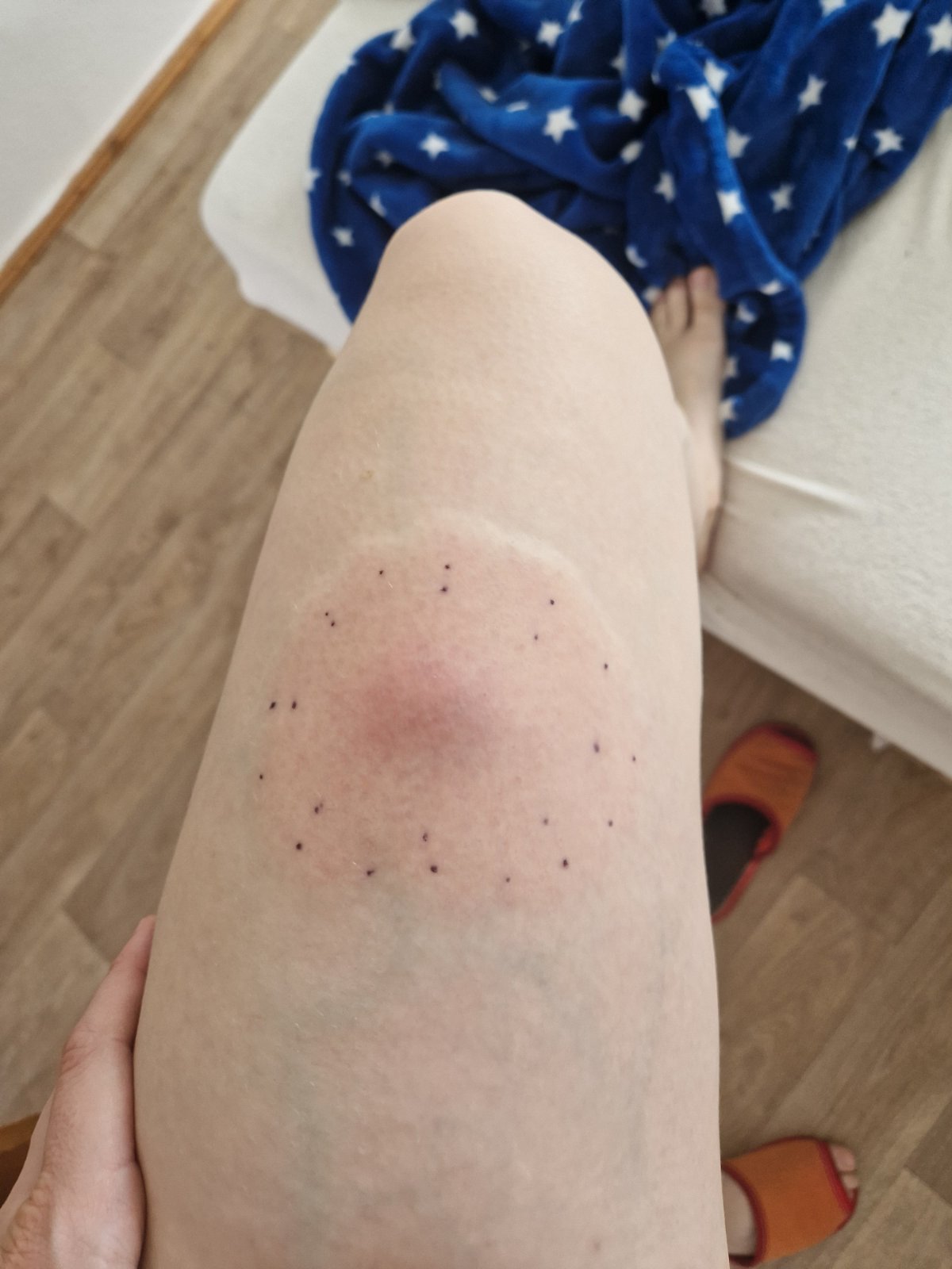 Já mám občas takovéhle reakce po bodnutí, tohle borelka fakt není. Léky na alergii a za chvilku to bude ok