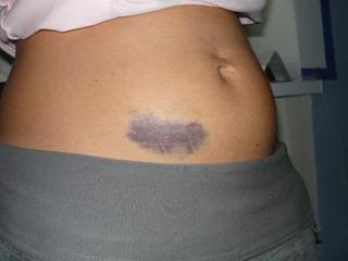 @zulok ahojik mne sa modrina spravila ked som si pichala rano a hned na to som sa obliekla do nohavic a pritiahla opaskom vtedy sa mi za niekolko hodin urobila modrina.