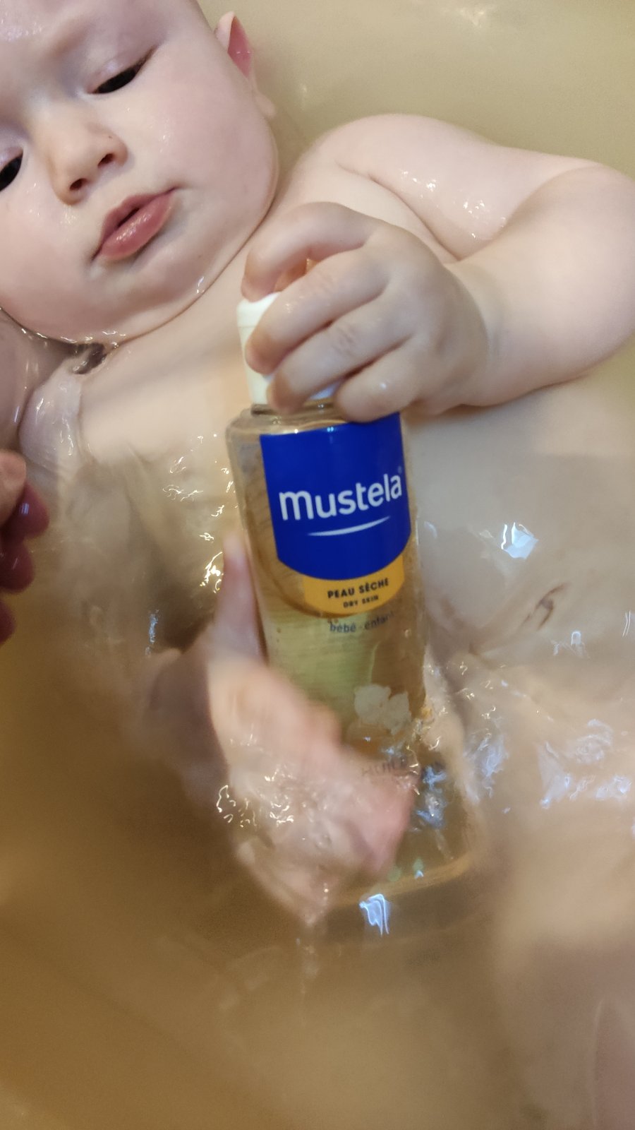Z testované béžové Mustely se mi velmi osvědčil olejíček do koupele, nevytváří film na vaně, děti nejsou nijak extra upatlane nebo lepkave... Dobře se ihned umyje teplou vodu, když po koupeli myju vanu.