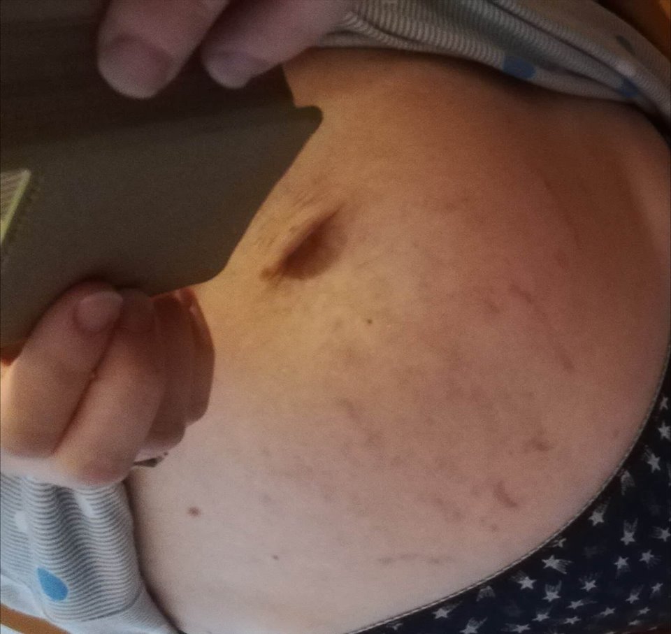 Během prvního těhotenství se mi strie objevily až ke konci těhotenství a to v podbřišku, kde nebyly moc viditelné a časem vybledly. Během druhého těhotenství jsem měla o poznání větší bříško a i přes mazání se mi na břiše v okolí pupíku objevily velmi hluboké strie, které po porodu byly velmi viditelné. To byl důvod proč jsem se do testování přihlásila, když jsem na olej viděla velmi kladnou reklamu.