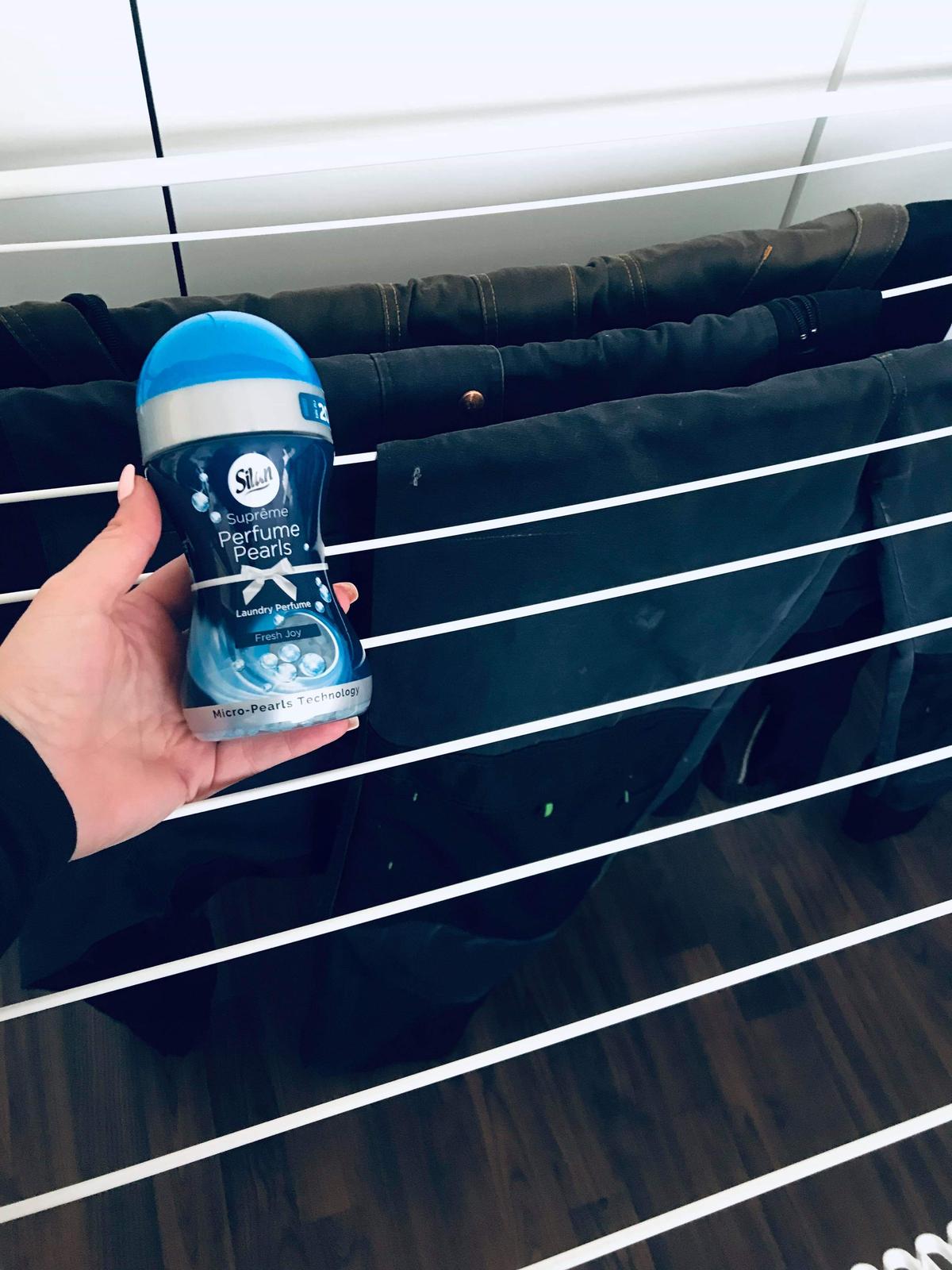 První jsem zkusila kuličky Perfume Pearls Magic Affair, tedy ty fialové. A na co jiného je vyzkoušet, než na manželovo oblečení na běhání z předchozího dne? Protože, popravdě, neznám toho moc, co by víc smrdělo. 🙂 Kuličky ale skvěle zafungovaly a po potu a smrádečku ani památky. Perličky krásně provoněly celý byt a byly cítit z prádla i několik dní po praní.