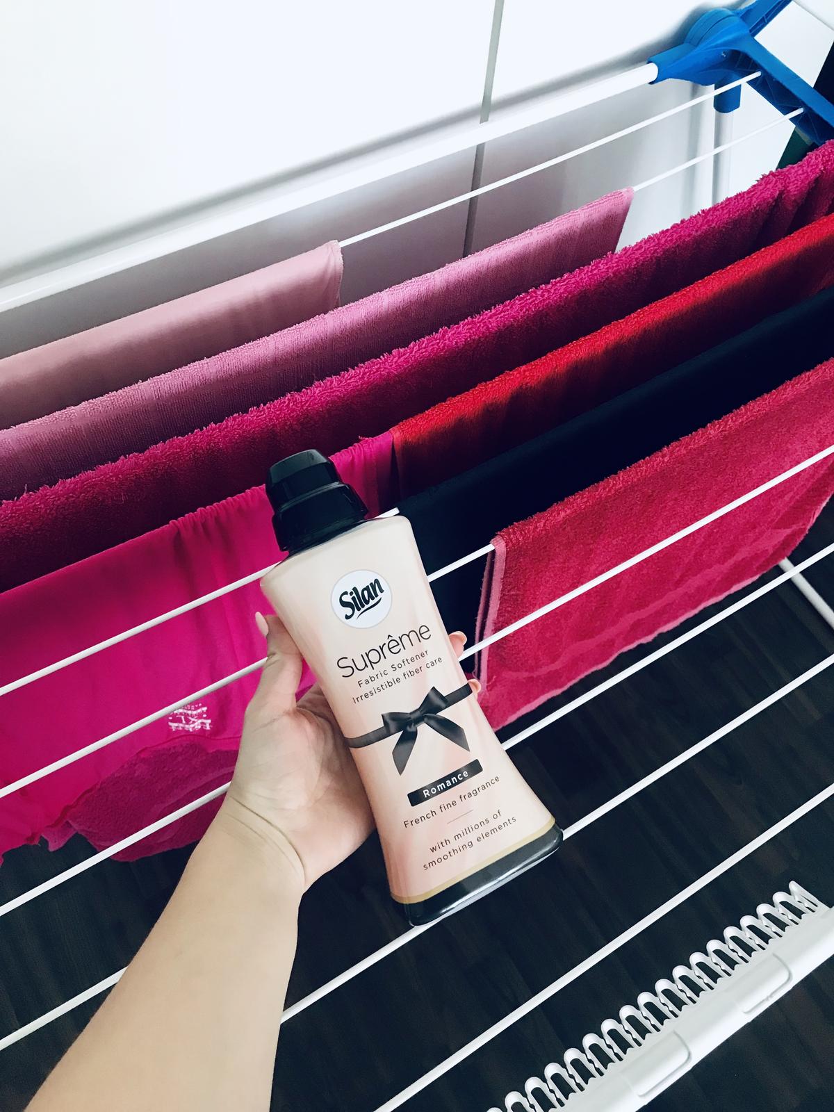 Další na řadu přišla tahle „růžovka” s názvem Silan Supreme Romantic. Aviváž jsem zkoušela už v minulosti, takže jsem věděla, do čeho jdu. Jak sem již zmiňovala, mám ráda silné, intenzivní vůně, takže mi voněla. Svoji vůni zanechá dlouhodobě i na prádle.