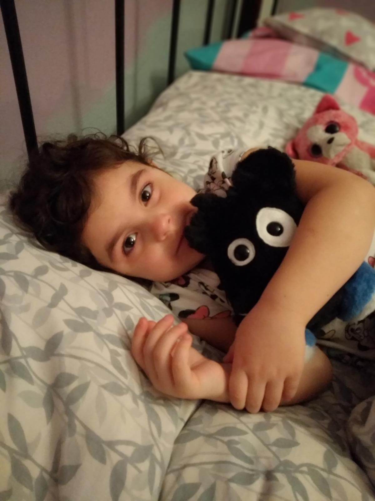 Plyšák děti zaujal jako první. Okamžitě si ho Taminka zamilovala a večer si ho s sebou vzala do postele, a to jsme se doma hooodně divili. Tami do té doby totiž měla svého oblíbeného růžového pejska (Denisku), kterého ještě nikdy nevyměnila. Ode dne, kdy dorazil balíček, medvěd nechyběl v posteli ani nikde jinde. Tahá ho s sebou všude, spí s ním a dokonce společně chodí i do školky. Na Denisku Tamarka úplně zapomněla.