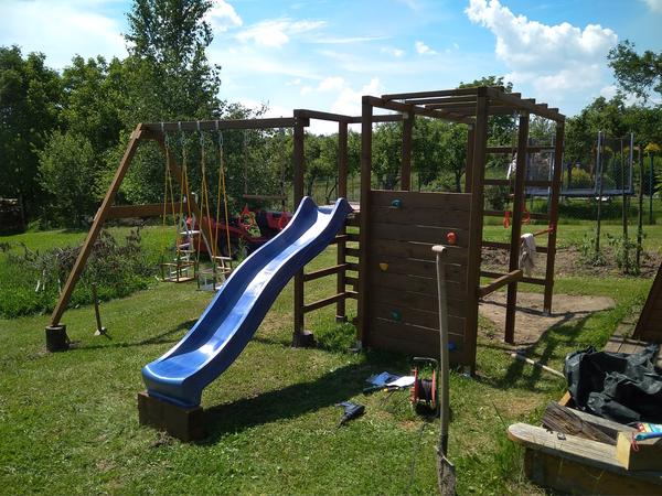 Tak máme dosloženo, teď už jen zabetonovat a natřít,to snad zvládneme během týdne a pak hodím nějaké fotky. Skládali jsme doma s manželem a šlo to docela dobře. Vypadá to hezky, díly byly všechny, všechny doplňkové věci taky v pohodě. Dřevo v pohodě, nakonec jsem našla asi jednu prasklinu ale to bylo zrovna asi na okýnku (takový malý odřezek), což nic nedrží, takže to nebudeme nijak řešit. Plíseň nebyla, dřevo krásně vyschlo, bylo naimpregnováno. Nicméně si myslím, že záruční dobu deseti let to nevydrží 🙂. Komunikace s nimi opravdu jen v němčině nebo angličtině. Takže za mě za ty peníze asi v pohodě, samozřejmě by bylo nejlepší si to udělat doma nebo od truhláře, ale na to nejsme dost šikovní a dost majetní 🙂. Otázka taky je jak dlouho to bude děti bavit.