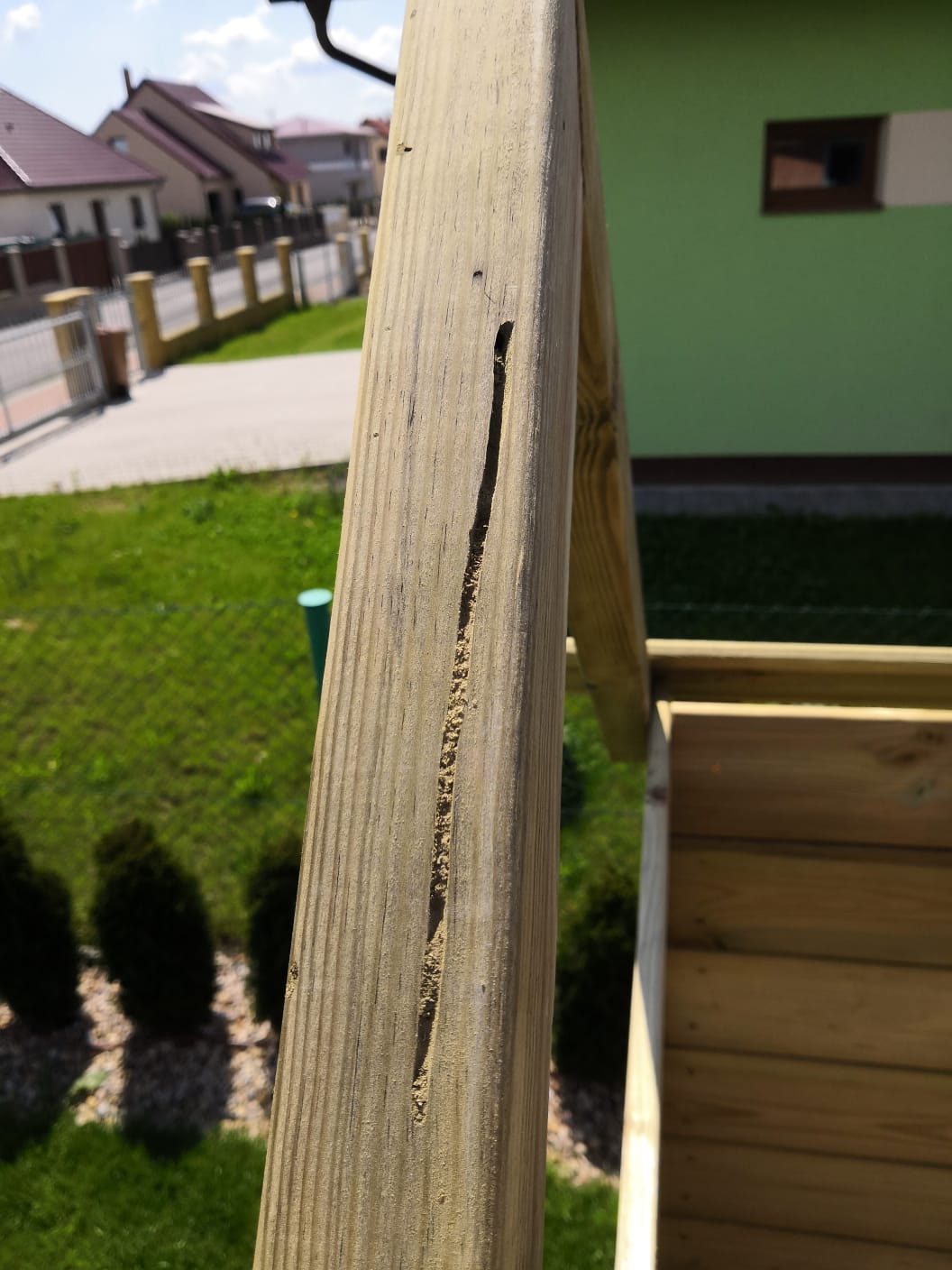 Nám taky hřiště dorazilo, volali den dopředu, domluva dobrá, hřiště bylo dobře zabalené, dřevo ošetřené penetrací, co jsem kontrolovala zásilka úplná, nikde nic plesnivého nebo křivého nebo výrazně prasklého, zatím schne, tak uvidíme až se bude stavět