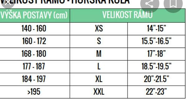 Jinak ta tabulka za mne úplně nesedí, já mám velkost rámu 22 a měřím 180 cm. Mám dlouhé nohy a na menším trpím 😀