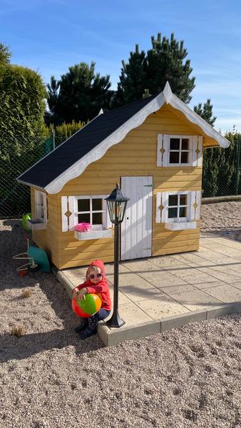 @majulkaa, @mom140 Mame tento ve zlute barve s bilym podbitim a cernou strechou: https://www.piccolino.cz/detsky-domecek-tom. Nechali jsme si ho od teto firmy i smontovat. Je opravdu dobre udelany, prostorny a netradicni tim vyvysenym pulpatrem. Mame ho uz tri roky, letos jsme delali celou zahradu nove a domecek jsme dvakrat prenaseli (unesli ho ctyri silni chlapy) a ve zdravi to prezil😁.
