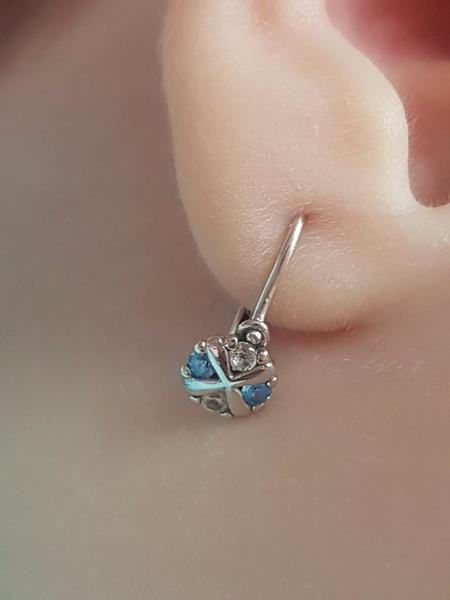 My jsme měli nastřelené asi 3 měsíce a pak jsem dala klasické dětské-stříbrné (pokovené rhodiem) s granátem...a máme ještě koupeny pecičky na šroubek-také s granátem, ale dáme je až bude větší.