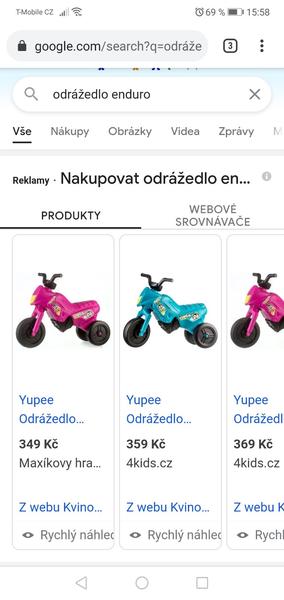 A pak kolove odrazedlo az bude vetsi, dobre se na nem uci rovnovaha..... My to delali tak, ze az se naucil poradne na enduru, tak jsme zkouseli to kolove, taky podle vysky