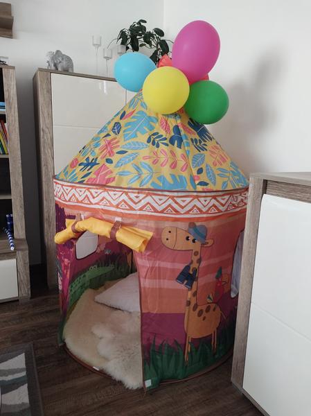 Zrovna jsem dnes řešila taky jako dárek k narozeninám 😀 Teepee jsem nechtěla, ale kamarádka měla sadu dva stany propojené tunelem a pro to jsem se nakonec rozhodla - dá se totiž používat i každý kus samostatně, zbytek se snadno složí a hezky se tam daji dát ty malé balonky (to je věc, která je teď u nás top, tak se mi to líbilo takhle vyřešit).