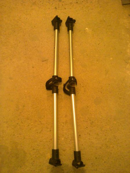 Mám (jedny darované - neseděly, jedny draze kupované - sedí, ale s prodejcem není řeč - nic nevysvětlí) nakonec dvoje krátké upevňovací tyče pro sourozeneckou verzi, z nichž pouze jedny na sporťák pasují (ke korbičkám naštěstí pasují oboje).