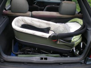 Jen pro zajímavost přidávám fotku, jak je kočárek uložený v kufru.