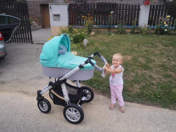 Tak po mensich peripetiich mame kocarek doma a nakonec zvitezila seda, byla to ta 07, 03 tam taky meli, ale byl pro nekoho uz rezervovany. Fotky dodam bohuzel jen toho sveho, meli je totiz vsechny zabaleny v krabicich a pan mi krabice jen otevrel a ja mrkla na boudy :(. Tyrkysova me zklamala uplne, je spis do zelena a pusobila na me vysisovane, cekala jsem tu barvu sytou a ona byla takovy jakasi vybledla....bezova se mi libila, neni tak svetla jak na nekterych obrazcich, ale je pekna, ta se ovsem nelibila tomu mymu a na sede jsme se shodli, ze je nejhezci...nevim, jak moc to vynikne na fotkach, ale barva je opravdu hezka, takova pekna svetla seda, bude se k ni dobre ladit ;). Jinak celkove kocarek super, prekvapilo me, ze se tam naprosto krasne a pohodlne vesel muj 2 lety syn a kocarek ae s nim naprosto lehce ovladal, myslim, ze budu max spokojena 🙂.