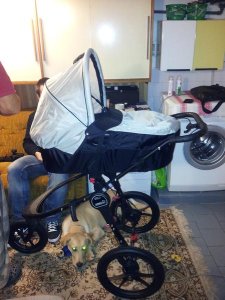 A BJ terén zvládá perfektně, viděla jsem ho u souseda, jak tady s ním rejdil po kopcích, které jsou docela dost překážkové a nevypadalo, že by mu to nějak vadilo 😉 (sousedovi, kočárku ani malému) 🙂