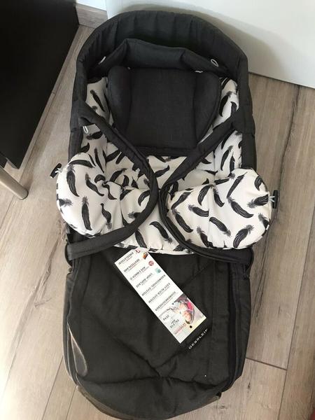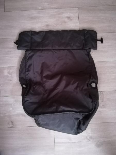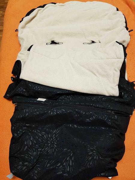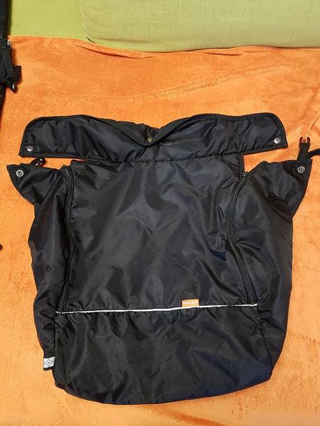 Ta druhá fotka je zimní fusak, ten je super. Hodně zahřeje a nemusíš mít pro mimčo zimní kombinézu. Nánožník tam vyfocený nemáš. Dávám fotku mého, je už starší. Používám ho pro sedící dítko třeba na jaře když už je teplo, není to na fusak, ale ani ne jen na deku. Zakryje nohy a neprofoukne.