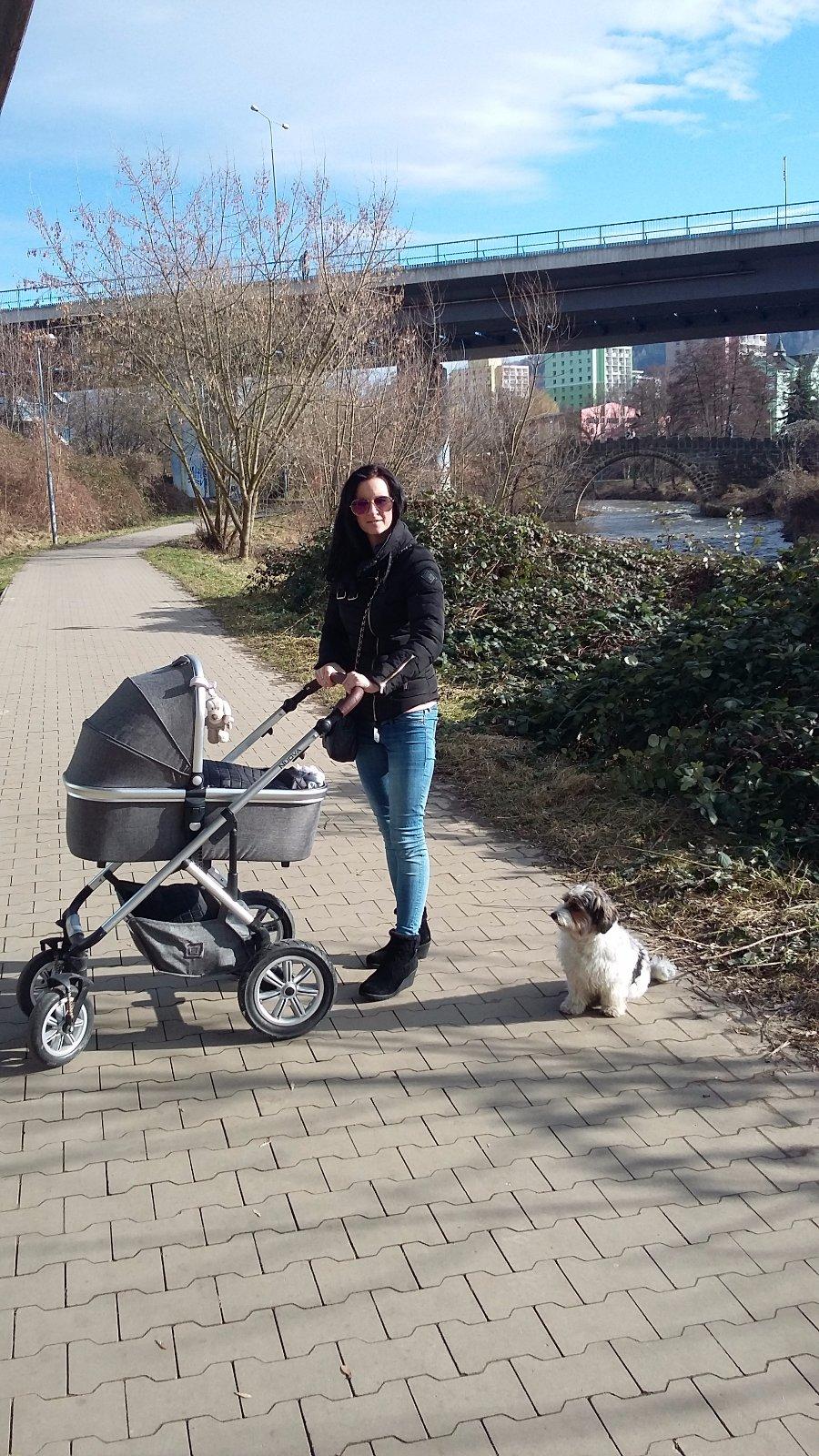 Jsem s ním moc spokojená, jízdní vlastnosti super, ikdyž je už sporťák i s naší velkou holčičkou těžký, tak se trošku nadřu, ale to mi nevadí, aspoň jdou kila dolu 😝 Je škoda, že přední kolečka nejsou stejný jako zadní, od toho štěrku ze zimy je máme dost zničený 😔