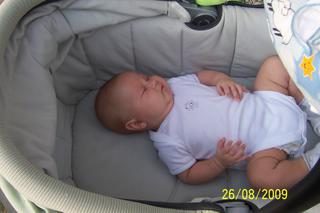 a že spí?????haha vstává v 5,ted taky jede druhé kolo,na balkoně v kočárku...