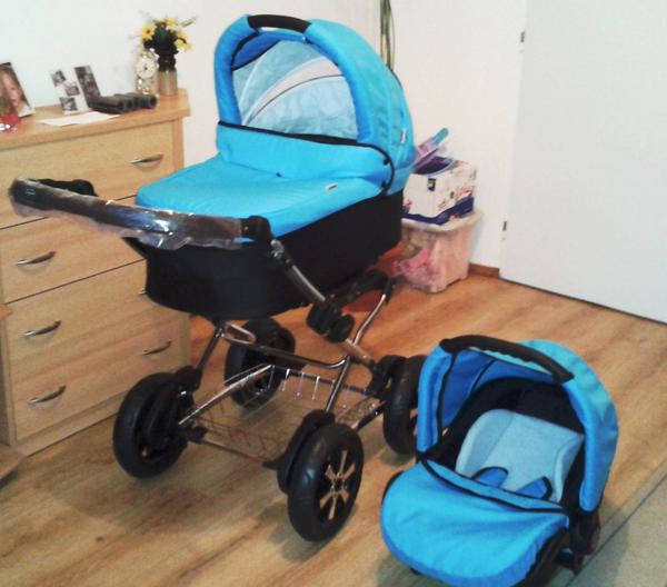Jinak teď mám gesslein (už teda hodně jetý, od kamarádky po dvou dětech) a to je kočár s vložnou taškou. Nechtěla jsem pevnou korbu, protože bydlím v bytovce bez výtahu, ale zase jsem potřebovala otočná kola.
