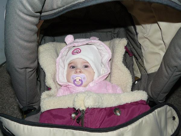 Já měla ještě, když byl hluboký kočárek, pod fusakem Eisbarchen velké oboustranné ovčí rouno přes celé dno kočárku a maličká byla nádherně teploučká i v největších mrazech. Do sporťáku nám to nejde dát, tak jsme předali švagrové, která čeká za chvíli miminko. A ovčí fusak jsme měly jednou půjčený a SUPER!
