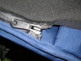 ahoj holky,nevím jestli si ještě pamatujete mojí reklamaci s potahem po půl roce používání.A že jsme pak zjistila,že u vyměněnýho potahu mám už po 2měsících opět dírky a budu to řešit po novém roce.Tak mi držte palce,v pondělí bych měla dostat novej potah,i když se dovozce zase cuká a tvrdí že je to vlastně moje chyba,že špatně napínám potah a pásky,prostě si pořád mele svojí písničku.A tvrdí že jsem jedíná která potah reklamuje.Ještě že mám tak skvělýho prodejce,kterej stojí při zákazníkovi.Přikládám i fotky.Akorát nevím jestli uhraju i tu boudu,to špatné zipové zakončení.
