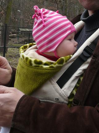 @terinda fotka bez čepičky: 4,5m rozepnutý prodlužovací zip-podpírá hlavičku (pokud mimi usne, stejně se ti opře o hrudník) 😉