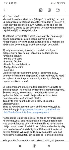 @nika110818 tak z těch zmíněných pro novorozence opravdu není ani jedno. Třeba u Tuly free to grow se to na eshopech s oblibou uvádí, ale moc vhodná prý není. Tady přidávám screen toho, co jsem o novorozeneckých nosítkách zjišťovala a sepisovala kamarádce na jaře 🙂 jinak určitě taky doporučím nosici FB skupiny, tam se člověk dozví 🙂
