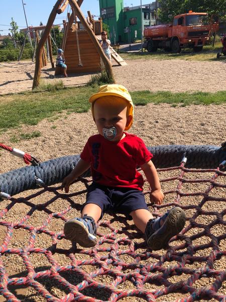Syn dělal v roce totéž, tak jsem to vyřešila slunečníkem na kočárek a přenadavala na tu stranu, kam zrovna svítilo. Byl to opruz, ale lepší než slunce na hlavu. Akorát že to bylo v době,kdy nechodil a většinu času při procházkách strávil v kočárku. Teď mi pro změnu velmi rád nosí takový slamák z tesca, sám si ho dá na hlavu a dnes v Kiku odmítal sundat, abych mu vyzkoušela novou ksiltovku 😁