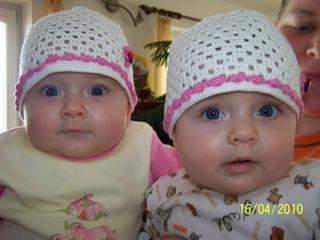 Hani, holky jsou nádherný, mají úžasný kukadla, ty čepičky holkám moc sluší. 😉 Já tyhle háčkovaný čepičky úplně zbožňuju, dětem fakt sluší, musím těm našim pak taky nějaký pořídit.