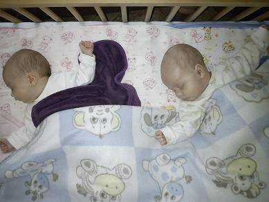 No a jinak je úplně normální, že budou spát v jedné postýlce... často se to i doporučuje... přece jen jsou mimča zvyklí z dělohy... 🙂