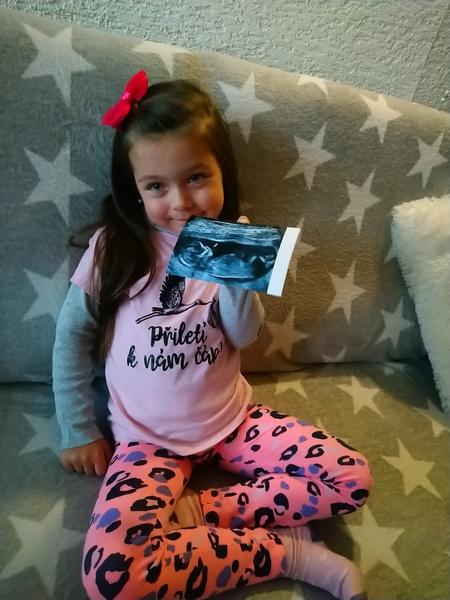 Meli jsme rodinne foceni i se starsi dcerou, stali jsme vsichni tri v objeti a dcera drzela velkou fotku z ultrazvuku.