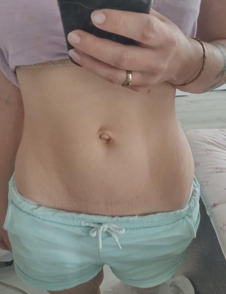 @optimistic Jj, vím o čem mluvíš, taky mi břicho vylezlo hodně dopředu, více než v první těhotenství, popraskaly už někdy okolo 7m a to jsem poctivě mazala... No nic, jsem skoro 2m po porodu a vypadá to pořád strašně, fotka trochu zkresluje, ale tak 2-3cm nad pupíkem to začíná a končí těsně nad prádlem. Je to celé hrbolaté, fialové, nevím co s tím 😞 Zkouším mazat olejíčkem ale nevím, jestli to k něčemu bude. K vodě si asi musím koupit plavky v celku, protože děsím i malého, když to vidí tak hned říká, že tam mám bebi...