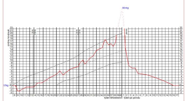 Já měla na kontrole ve 34tt +22,9kg ... zítra jdu na kontrolu ve 36tt a troufám si říct, že už to bude tak +28kg ☹