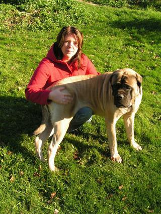 @januliina jojo to jsem já :o)).. na foto už se tesim, miluju molosaky :o).. segra ma ročni holčičku, vzdycky kdyz jde Jess kolem ni tak uz si kryje oči protoze je svihne ocasem.. jinak po ni leze a jezdi na ni, a Jessina drzi.. čim krmite?