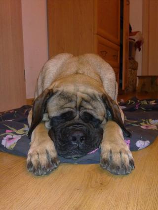 @januliina Ty jo Tě sežere :o).. to naše je dietařka, tak že naštěstí jsme do ni neinvesotvali tolik, zato za veterinare porad.. to je rentgenek na pacicku, pak si nekde prisedneme na studeny tak mame zanětik, pak mame bolaky na puse.. hruuza.. kolegyne v praci si chtela poridit mastifa ale netušila ze to jsou asi nejaky starosti, pak se rozvadela a stehovala se do panelaku.. a psa davala pryč.. v 5ti mesicich.. nikdo ho nechtel..tak jsem ho ja 21. prosince dovezla domu, uvazala pred dvere, zazvonila a schovala se... Mamku malem kleplo :D.. je to uz tři roky.. ona tim jak malo zere a je fenka tak je mala, ma kolem 62.kg. Je desne hodna, řikame ji moulis.. teda je to Jessina, ale je to černa tlama :D.. milaček rodiny.. ale v listopadu jsme malovali, a uz jsou kemry zas az na strope, chlupu vsude šilene.. a nikdy nic neudela, ale nesmi ji nikdo nechat doma samotnou, to je fakt pak hodne nastvana :D.. dam sem foto.