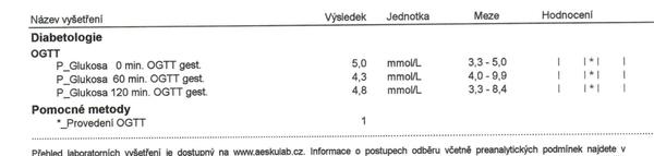 no nic, pockam na vysledek kompletniho testu a kdyz vyjde v poradku, jakoze lacna urcite, protoze za ty hodiny glukoza v 1. vzorku klesne pod hodnotu 5 na 100%, tak pujdu do diaporadny, kam jsem chodila se starsim i mladsim, oni me vezmou a proste pujdu jeste jednou na lacny odber, pres ktery uz tentokrat neprojdu, protoze u nas v nemocnici (kde pracuju), to delaj spravne, 1. vzorek nabiraj ze zily, vyhodnocuji okamzite a pri hodnote nad 5,1 se test ukonci.