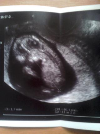 Tak holky jsem tady.Uz mam po KO a vsechno je v naprostym poradku.Mela jsem obavy ale uz jsem klidna.Mimco krasne roste,ma vsechno co ma mit,doktor ho meril a vsechno OK.Byla jsem taky na odberech a 7.10 mam dalsi kontrolu.Pak mi vyhodnoti vsechny vysledky,snad bude vse ok.Podle mereni name mimco ani razstep a ani Downa.Tak jsem stastna a tady mate fotecky meho drobce.Jo a podle UTZ jsme o 6 dni mladsi 11+3 tak mame termin porodu posunuty na 9.4.Mozna jeste doroste,uvidime