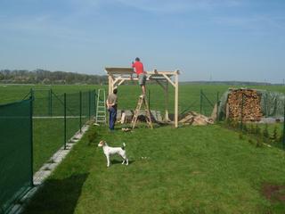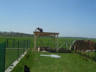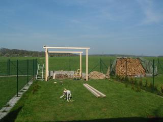 Posílám vám slíbené fotečky naší rozestavěné pergoly na zahrádce, aneb: Jak se staví jeden z Ájiných snů 😀 :