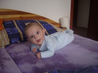 Jinak je muj šikulínek zlatej, ak si pořád prohlíží ručičky,a mudlá si je, vypadá to jako by si mnul ruce 😀 a nebo počítalprsty...vždycky si říkám, jejda, doufám, že jich nemáš 11 jako taťka 😀 no a začalse mi otáčet na bok, je to švanda,jak vždycky hodí tou nožičkou aby se překulil 😀 Kdyby mu nepřekážela ruka, tak už se dostane i na břicho 😀