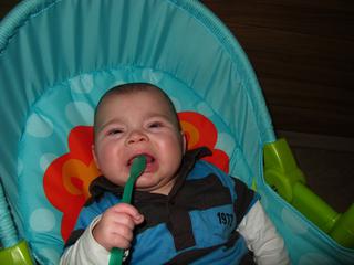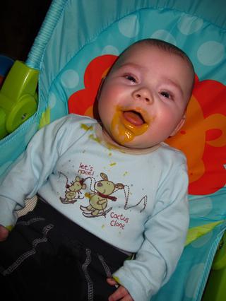 My už se zbrchali po očkování.2dny byl otravnej jak šváb a 2 noci nespaní,menší teplotky ale naštěstí je už klid.snad to nebude takto prožívat každé očkování?mě by jinak trefilo 😝 a posílám naše čuňátko 😀 jak nám baští zeleninku.Nevím co mu na tom tak chutná když je to takový 😝 😝 ale olizuje se a huká že chce zase 😀