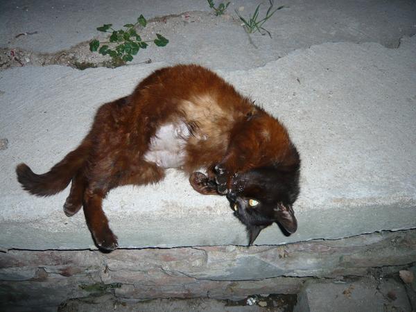 pokud je ciste venkovni a nikdo o ni nepecuje (nedaval ji zradlo ani nenechaval prespavat treba jen v kulne) tak to na ni bude poznat, spinava az zplstnatela srst, usopleny nos, casto i vytok z oci a hlavne by si drzela od lidi odstup.. pokud je to takovy velky mazel tak bud nekomu patri/patrila a nebo je brezi, to jsou pak pritulne i jinak venkovni bojacne kocky, proste je zblbla tehotenskymi hormony :c)